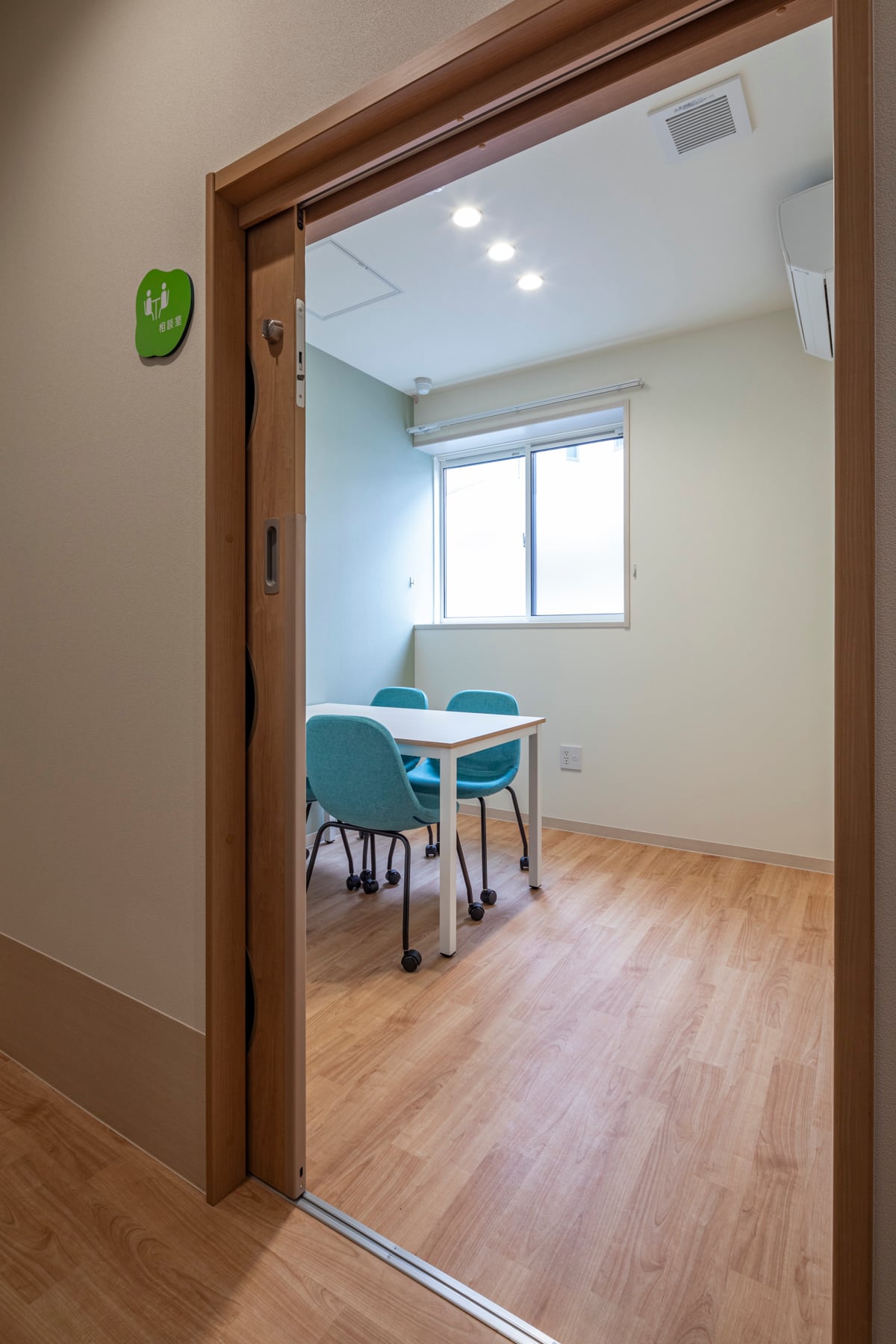 隣室の音を気にせず、静かな環境で安心して相談できる、明るくゆったりしたカウンセリングルーム