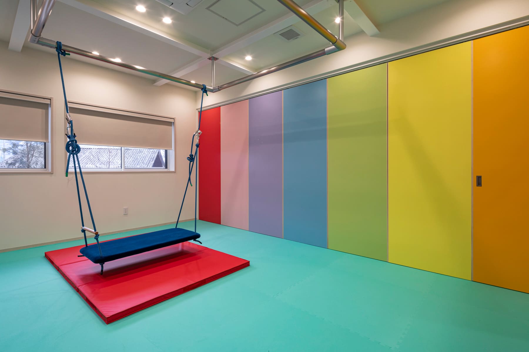 「ただいま」「いってらっしゃい」。そんな、やさしい言葉が飛び交う、安心できる場所を目指しています。保育所と児童発達支援を兼ね備えるという特徴を活かし、のびのびと遊べる場をつくりました。
