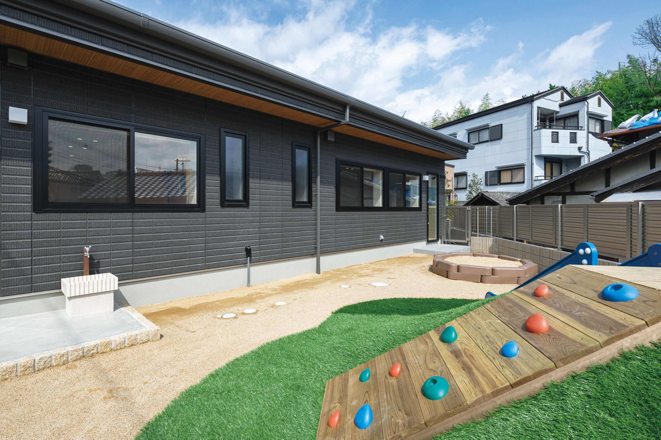 遊具を配置し楽しく遊べる外部スペース