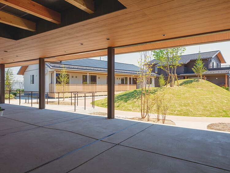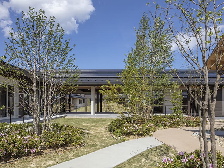 障がい者グループホーム。写真右奥に中庭が広がっている。