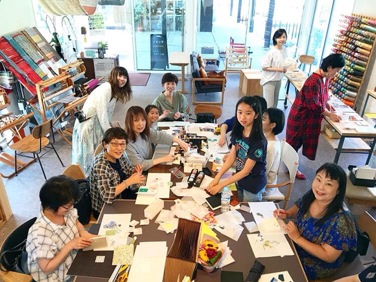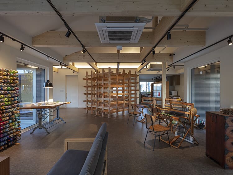集いの中心となるコレクティブスペース。幅広く多様な活動ニーズを受入れる空間。古い家具や道具を活用し、季節の料理作りができるキッチン、ライブラリースペース、さをり織体験スペース設置。
