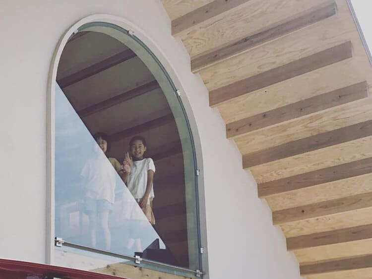 ノキシタハナレの2階ギャラリーから見下ろす子ども達。