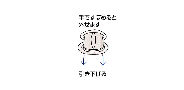 2カ所あるカバーのスプリング式引っかけ金具の一つを、手ですぼめて外してください。