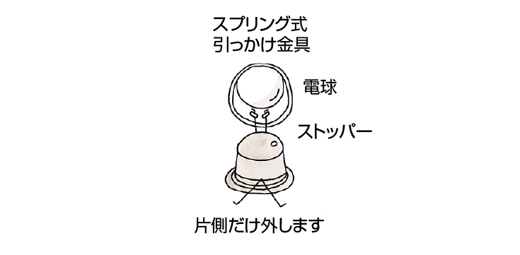 カバーのスプリング式金具を、すぼめながらストッパーに差し込んでください。