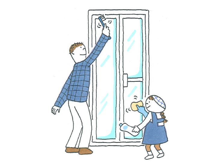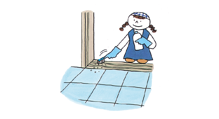 浴室ドアは浴槽や洗い場と同じく、毎日水で洗い流し、水分をしっかり拭き取ることが大切。月に1度は洗剤を使用するなど、浴室ドアとドア枠を一緒に念入りにお掃除してください。