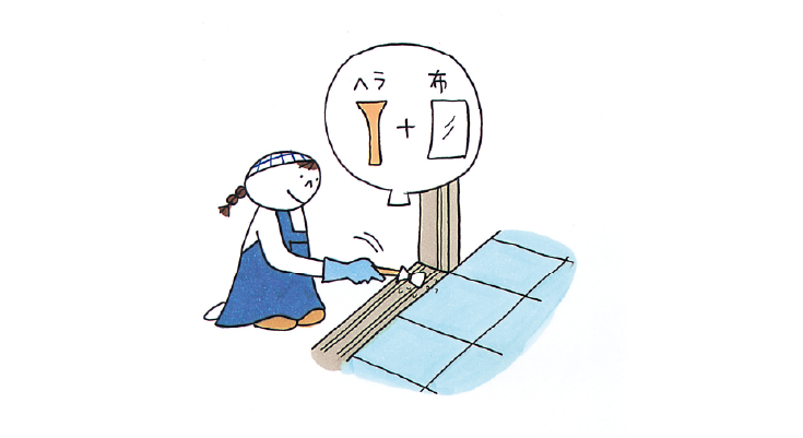 ヘラなどに布を巻きつけ、水で濡らして桟の汚れを拭き取ります。