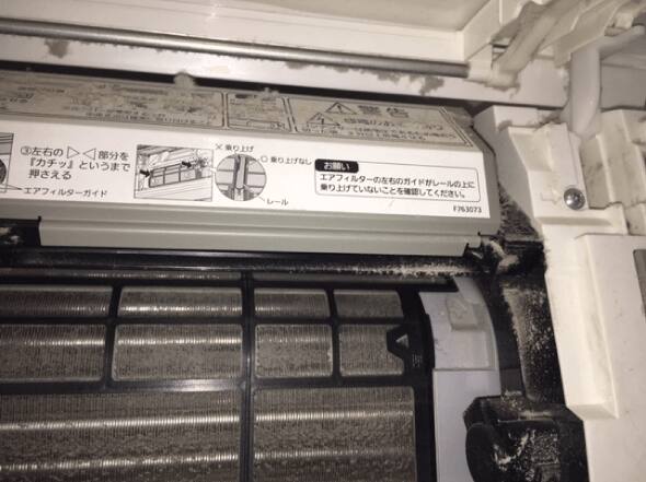 しかし、室内機のカバーを開けるとフィルター以外にもほこりが付着しているので付近の清掃も必要になってくるのです。