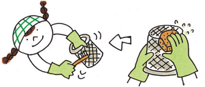 シンクのごみかごは、1日の終わりにごみを除去し、スポンジや歯ブラシで清掃しましょう。
