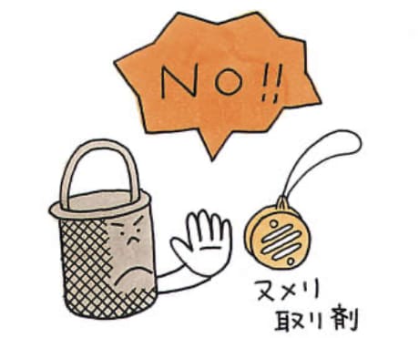 ごみかご用の塩素系ヌメリ取り剤はステンレスを傷めるため、必ず非塩素系の製品を使用してください。