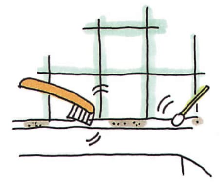 - しばらく置いた後、歯ブラシでやさしくこすり洗いをしてください。