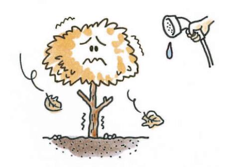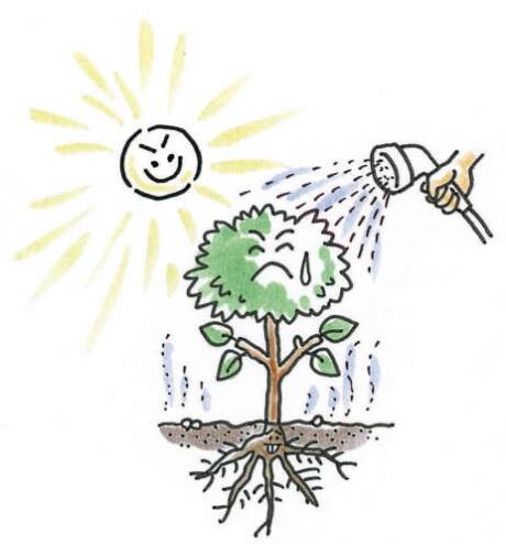 この時期に水やりを怠ると、木が枯れたり弱ったりする原因となります(植え付け直後から半年間の水やりを怠って木が弱った場合、回復するまで5年ほどかかることがあるので植え付け直後の水やりは重要です!)。