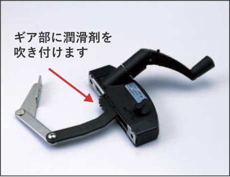 オペレーターハンドルギア部へのシリコンスプレー塗布。および固定ネジ類の緩みチェック。