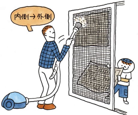 - ほこりがたまって目詰まりしないよう、普段から網戸ブラシでこまめにほこりを取るようにしましょう。