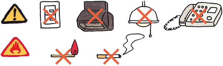換気扇、電灯などのスイッチには、絶対に触れないでください。