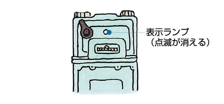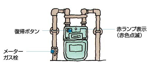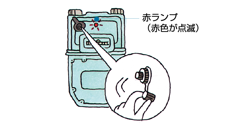 マイコンメーターの赤いランプが点減していると、ガスを遮断しています。ランプをご確認ください。
