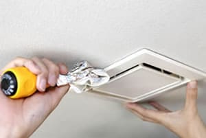 サブグリルは、嵌合(かんごう)で固定されているタイプがあります。その場合は、天井材が傷つかないよう、グリルと天井材のあいだに、プリペイドカードや薄い布をあてがってドライバーを差し込みます。