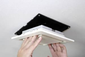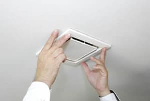 天井材を傷つけないよう、ドライバーをゆっくりと動かして、グリルを外します。