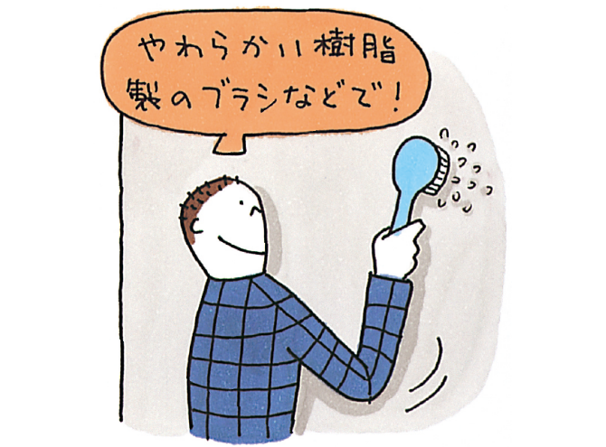 外壁をワイヤーブラシや金属タワシなどの固いものでこすると塗装表面を傷つけ、劣化を早めてしまいますので、使用しないでください。