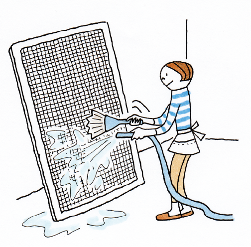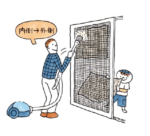 網戸はほこりがたまりやすく、放っておくと目詰まりして充分な通気が得られなくなります。普段から網戸ブラシでこまめにほこりを取るようにしましょう。