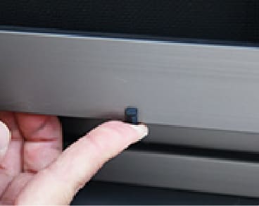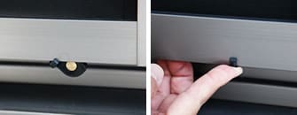 最後に、左右2カ所のハズレ止めピースを、上部レールから網戸が外れない位置まで下げ(レールに干渉しないよう上部3mm程度の隙間をあけて)、ビスを締めてください。