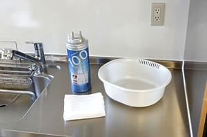 雑巾などで水を受けましょう。