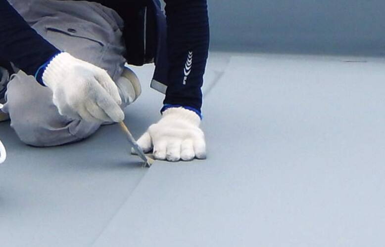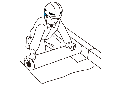 重ね張り防水リフレッシュ 既存の防水層の上に、新しい防水層を重ね張りし、工事中の雨漏りリスクを減らす。