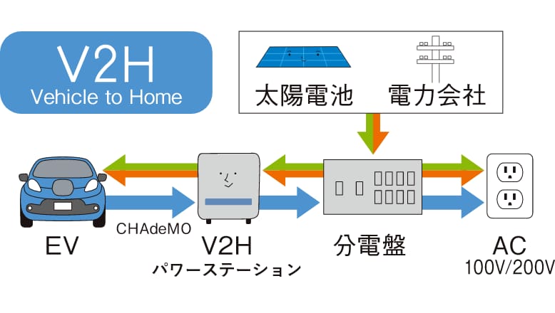 地球温暖化抑制策としてEV(電気自動車)が注目されています。車種によっては大容量の蓄電池を搭載しているので、太陽電池で日中発電した電気をEVに貯めて、夜間に使用すると光熱費の削減につながります。