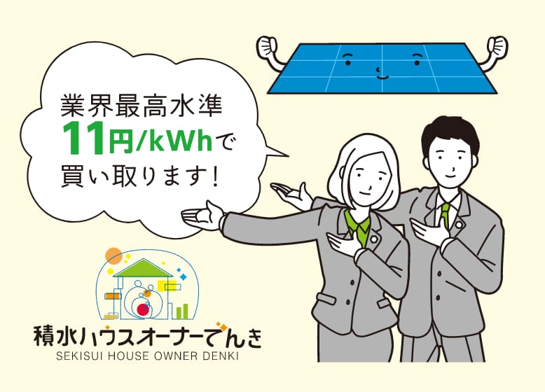 太陽電池を設置して10年を迎える積水ハウスのオーナーさまから、これまで売電していた電力を業界最高※水準の11円/kWhで買い取ります。