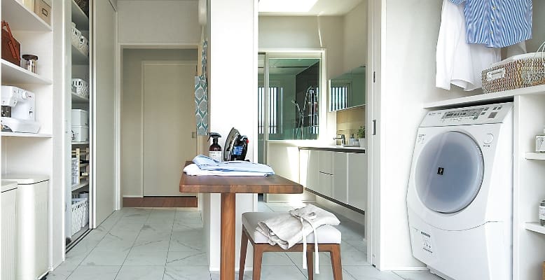 ホームランドリーは洗って、乾かして、しまうという洗濯動線が効率的になってお洗濯が楽しくなります。
