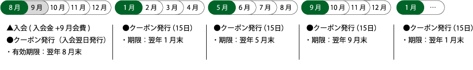 入会翌月から4ヶ月毎に1枚ずつ