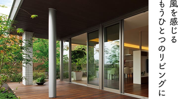 室内にいながら、まるで外で過ごしているかのようなここちいい暮らしを手に入れることができるんです。