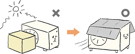 ふだんはその存在をつい忘れがちですが、快適な室内環境をつくるにはエアコンの室外機はとても大切。室外機内にある熱交換器でうまく放熱できないと余計な電力を消費してしまうので、吹き出し口をふさがないようにしながら日よけをしておくのがおすすめです。また、エアコンの停止は5分程度送風運転をした後に。内部結露を取り、カビの繁殖を抑えることにつながります。