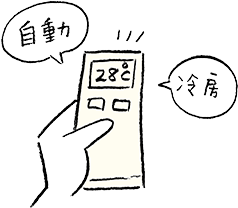 風量設定はなんとなく「微風」や「弱」が環境にもお財布にもやさしそうな気がしますが、実は逆にエアコンに負荷をかけてしまうケースも。思い切って「自動」にしてしまい、温度を28度くらいの高めに設定する方が節約になります。