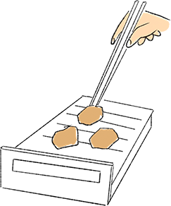 揚げ物を置くバットは大きく洗うのも大変。その代わりに魚焼きグリルの網を使いましょう。魚焼きグリルはコンロのすぐそばにあり、引き出すだけですぐ使えるのが魅力。上にキッチンペーパーを敷いて使えば、ほとんど汚れないので、洗う必要もありません。