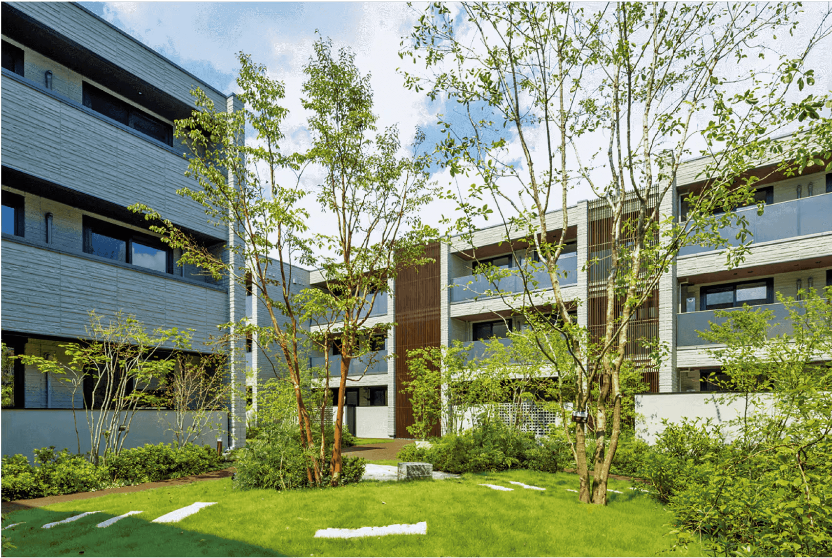 また、入居者のニーズに合わせて選べるよう、例えば、みんなで囲んで会話も弾む対面型キッチンのある開放的なLDK空間や、ウッドデッキと広々としたプライベートガーデンを備えた居室など、バリエーション豊かな間取りにも入居者目線の発想を活かしました。オーナー様からは「外観や植栽にもこだわっていただき、一味違うものができた」とのお声が寄せられ、近隣の方々にも好評だそうです。