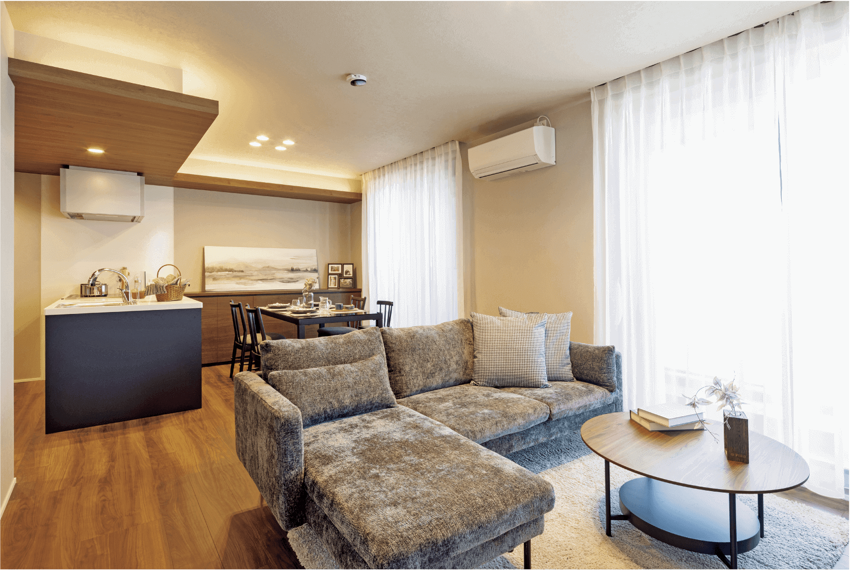 家族とのつながりを生む、コミュニケーションキッチンのある居室。
