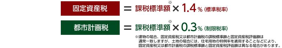 税額は次の算式によって計算されますが、都市計画法による都市計画区域のうち、原則として市街化区域内に所在する土地や家屋に対しては、別に都市計画税が課税され、固定資産税と併せて徴収されることになっています。