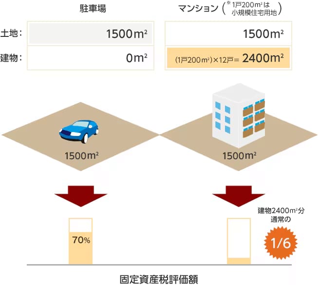 - ※土地の固定資産税や都市計画税等は軽減されることになりますが、新たにアパート・マンションの固定資産税等が発生します。