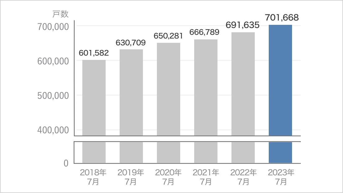 ※ 一括借上システムを含む全管理物件実績717,417室(2024年7月現在・積水ハウスシャーメゾンPM各社の実績)