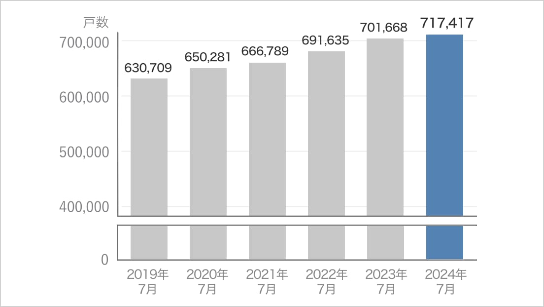 ※ 一括借上システムを含む全管理物件実績717,417室(2024年7月現在・積水ハウスシャーメゾンPM各社の実績)