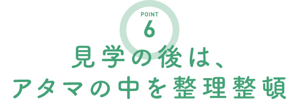 お疲れ様です。当日はたくさん歩き回って、お疲れだと思います。でも、見学の後は早めにアタマの中を整理しておくことがおすすめです。