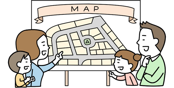 展示場に着いたらまずはセンターハウスへ。案内図やパンフレットなど展示場全体の情報が揃っているので、いろいろなモデルハウスを見たいときに便利です。目的のモデルハウスがある場合は、あらかじめ作戦会議してから回るとよいでしょう。