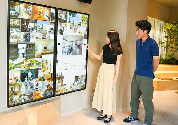 大画面に映された画像を直感的に触れ、心が惹かれるイメージと出会うことができます。