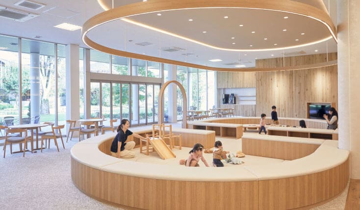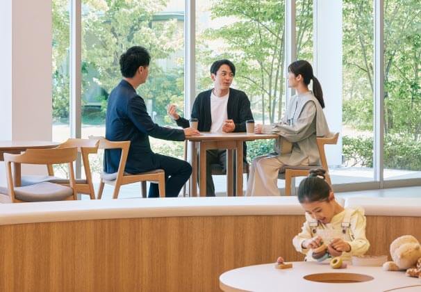 絵本やおもちゃもある、充実のキッズスペースを完備。打ち合わせをしながら遊んでいる子どもたちを見守ることができます。